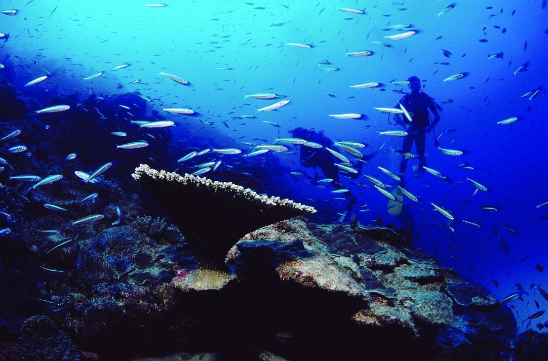 Le tunnel, orné d'anémones et de coraux aux couleurs vives, vous conduit tout droit vers les profondeurs de l'océan Indien, dans une ambiance aussi mystérieuse qu'exaltante. Vous y rencontrerez probablement de vastes bancs de carangues ignobilis et autres espèces surprenantes.
